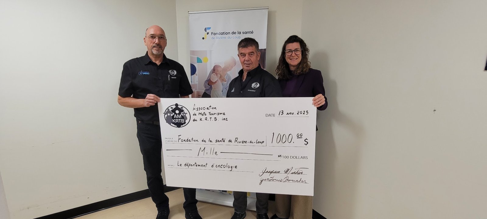 Un don de 1 000$ à la Fondation de la Santé de Rivière-du-Loup pour améliorer la salle d’oncologie du CHRGP.